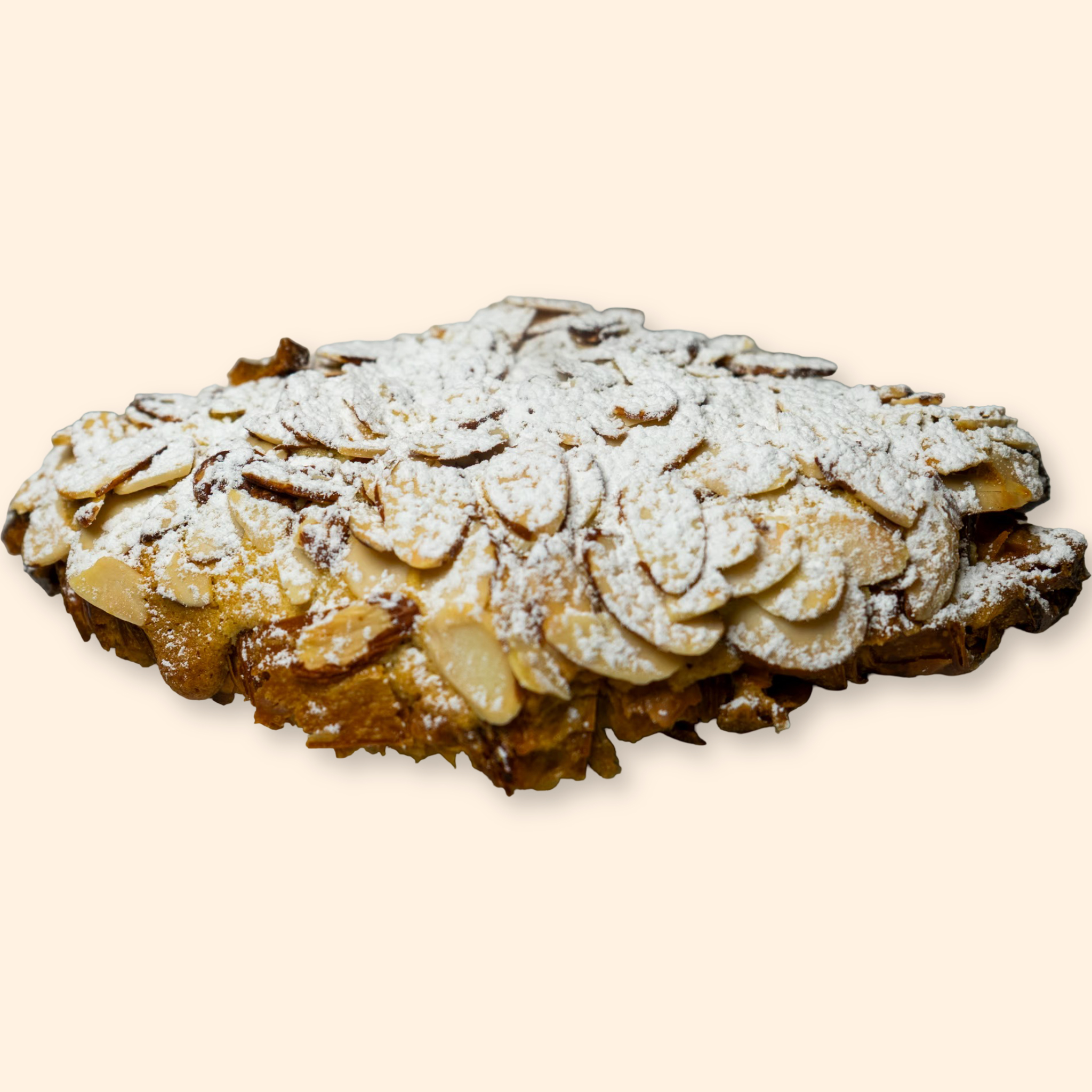 This box includes two classic Almond Croissants, filled with rich almond cream, topped with toasted almonds, and lightly dusted with powdered sugar, alongside two Raspberry Almond Croissants, layered with bright raspberry jam and topped with powdered sugar and freeze dried raspberry powder.